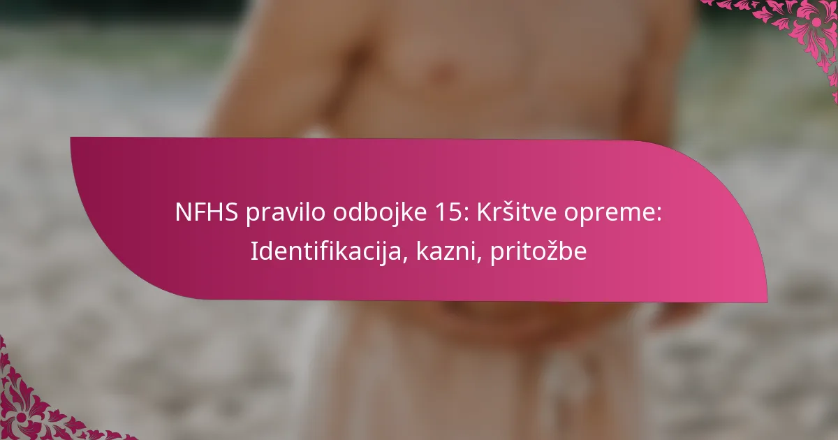 Pravilnik NFHS o odbojki, člen 15, obravnava predpise in kazni, povezane z kršitvami opreme med tekmami, ter podrobno opisuje, kaj šteje kot takšne kršitve in vrste opreme, ki so prizadete. Te kršitve lahko vključujejo neprimerne uniforme in nezakonito opremo, kar lahko vodi do pomembnih kazni, ki vplivajo na igro. Poleg tega imajo ekipe možnost, da se pritožijo na odločitve glede teh kršitev, če sledijo strukturiranemu postopku, kar je za igralce in trenerje bistveno, da se seznanijo s pravili in postopki, ki so vključeni.