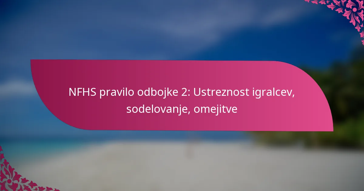 Pravilo 2 NFHS določa merila za upravičenost in sodelovanje igralcev, ki se razlikujejo od tistih, ki jih določa NCAA in USAV. Razumevanje teh razlik je ključno za igralce, trenerje in administratorje, da zagotovijo skladnost in maksimalno povečajo možnosti za sodelovanje.