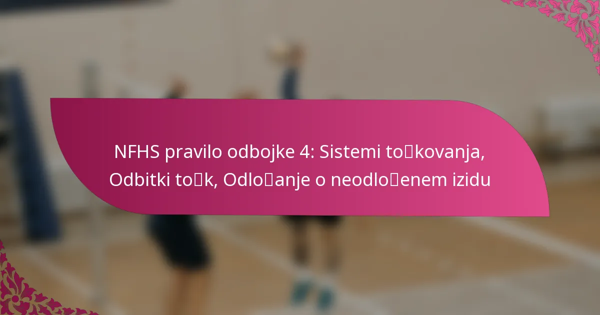 NFHS pravilo o odbojki 4 opisuje sisteme točkovanja, ki se uporabljajo v srednješolski odbojki, pri čemer se osredotoča predvsem na rally točkovanje in tradicionalne metode. Razumevanje teh sistemov je ključno za igralce, trenerje in uradne osebe, saj neposredno vplivajo na izide tekem in strategije.