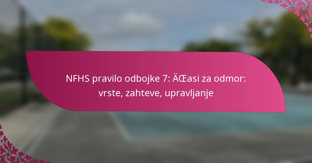 Pravilo 7 NFHS odbojke opisuje različne vrste časovnih izpadov, kako jih lahko zahtevamo in njihovo upravljanje med igro. Razumevanje teh vidikov je ključno za učinkovito komunikacijo ekipe in izvajanje strategij med tekmami.