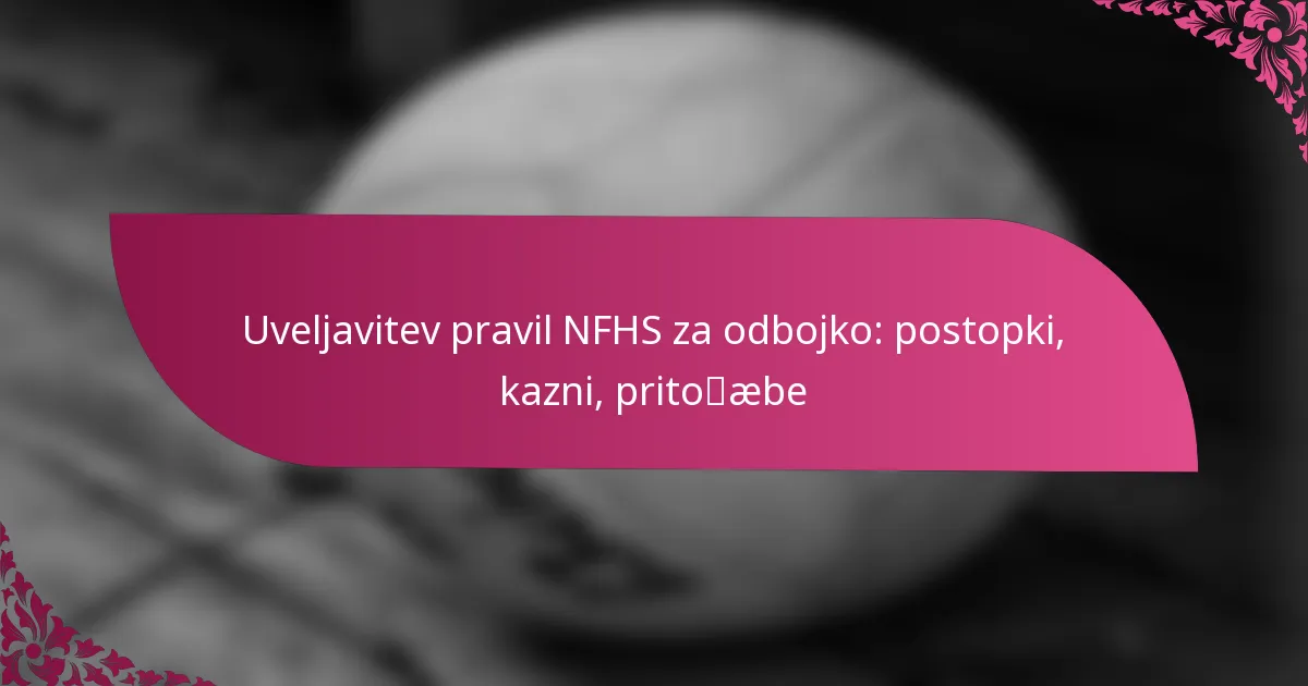 Postopki za izvajanje pravil NFHS za odbojko so zasnovani tako, da spodbujajo pošteno igro in skladnost s predpisi med tekmami. Ti postopki opredeljujejo vloge uradnikov, poročanje o kršitvah in postopek preiskave za obravnavo kršitev. Kazni za kršitve pravil se razlikujejo po resnosti in so ključne za ohranjanje športnega duha, medtem ko obstaja tudi uraden postopek pritožbe za izpodbijanje odločitev o izvajanju, ki zahteva upoštevanje določenih smernic in rokov.